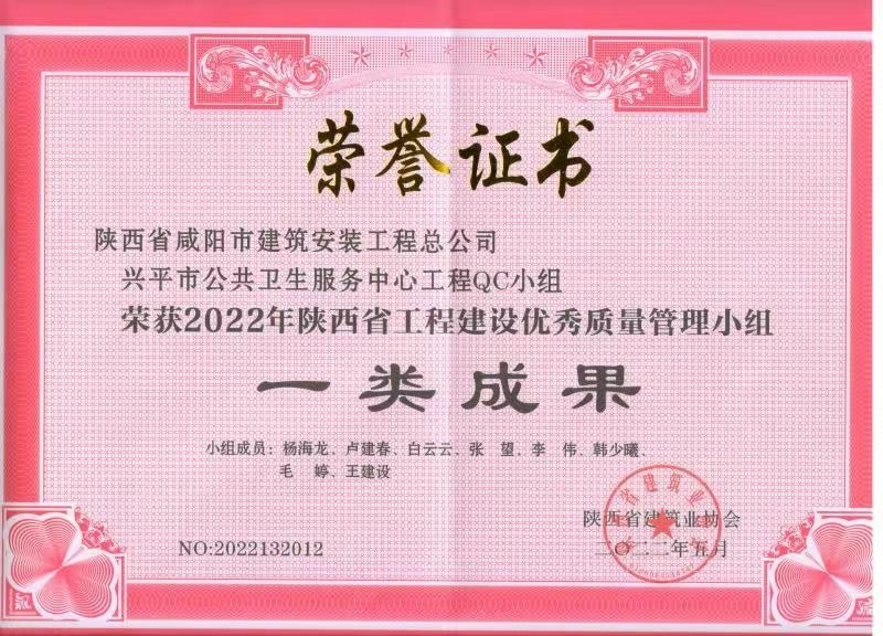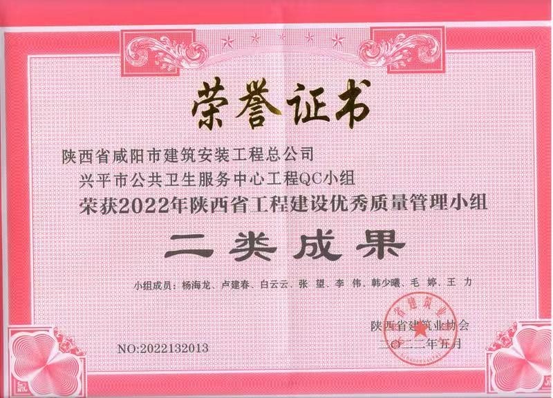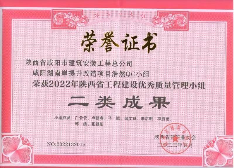 2022年度QC小組活動(dòng)成果證書