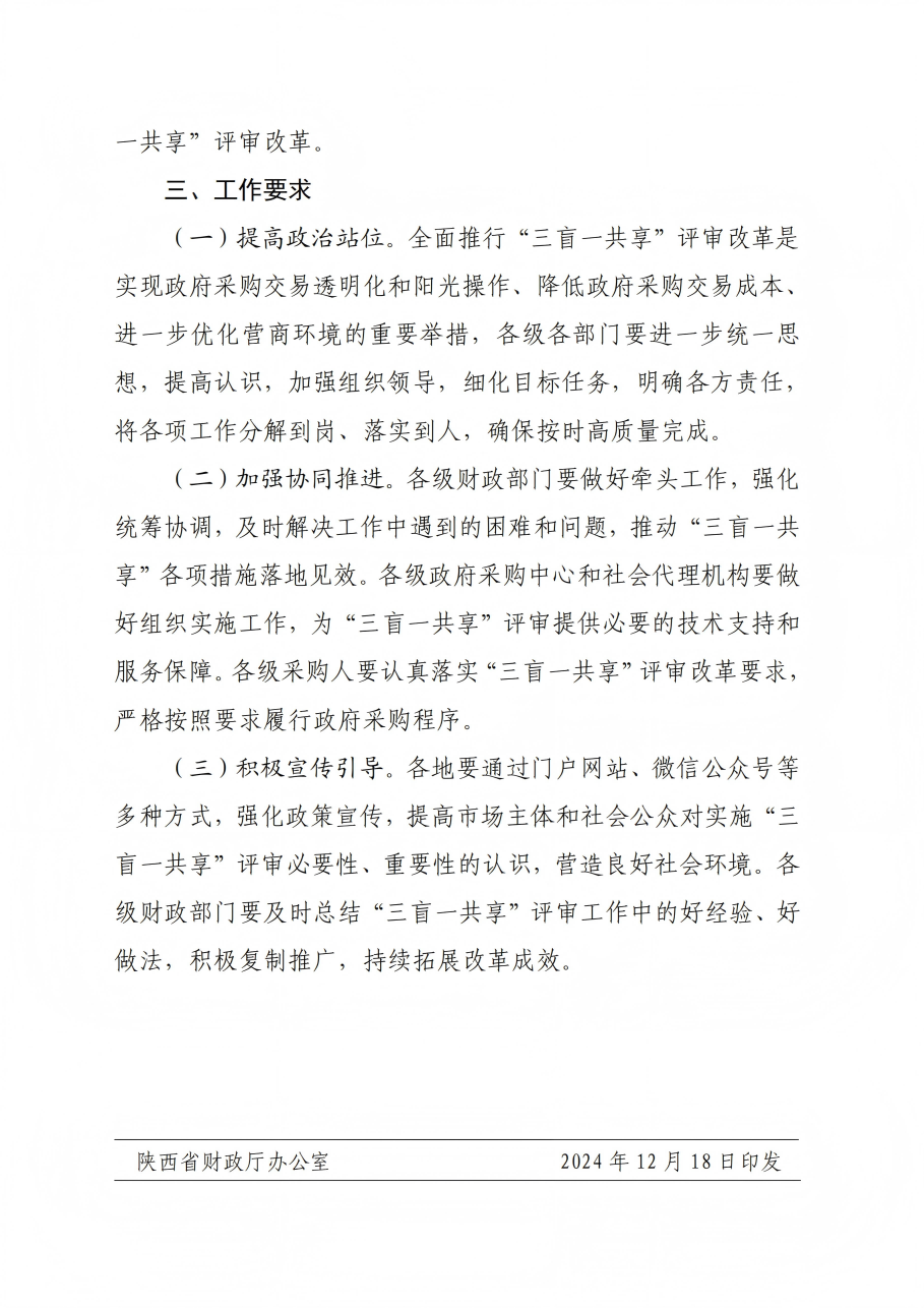關(guān)于印發(fā)《陜西省政府采購領(lǐng)域“三盲一共享”評(píng)審實(shí)施方案》的通知